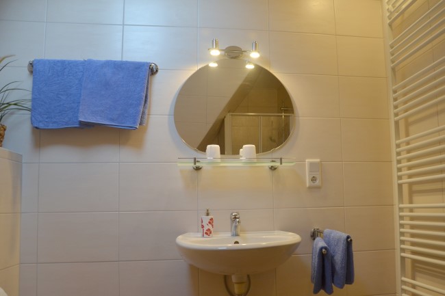 - Waschtisch, WC (Handtücher werden gestellt!)